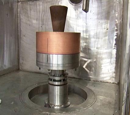 1307#產(chǎn)品ZGX-50B雙性能鑄造爐中的液壓隨動傾轉(zhuǎn)澆注系統(tǒng)與離心轉(zhuǎn)動機(jī)構(gòu)系統(tǒng)是整臺設(shè)備的核心部件,它可以將熔煉好的鋼液用模仿人的操控動作快速準(zhǔn)確倒入模殼中,然后開動轉(zhuǎn)動機(jī)構(gòu),使水冷結(jié)晶器帶動模殼按程序正反方向旋轉(zhuǎn),待高溫合金凝固后即得到細(xì)晶組織。這兩項(xiàng)動作必須連貫無誤的操作執(zhí)行才能成功。